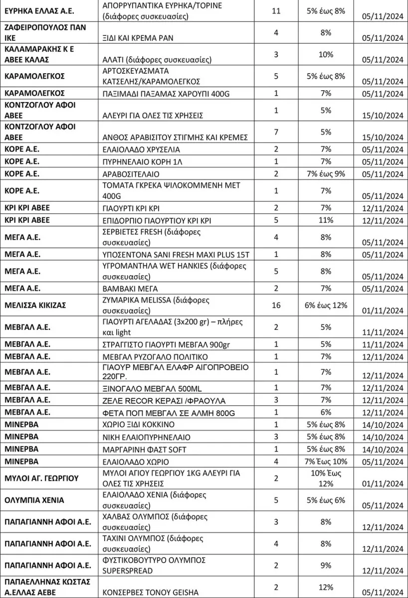 Η λίστα με τα 523 προϊόντα με μειωμένες τιμές από 5% ως 24% στα σούπερ μάρκετ. Κατεψυγμένα θαλασσινά, γαλακτοκομικά προϊόντα και σοκολάτες ανάμεσά τους