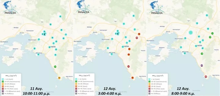 Το δίκτυο παρακολούθησης ποιότητας του αέρα που λειτουργεί στο πλαίσιο της Εθνικής Ερευνητικής Υποδομής ΠΑΝΑΚΕΙΑ, για τη μελέτη της Ατμοσφαιρικής Σύστασης και της Κλιματικής Αλλαγής, καταγράφει σε συνεχή βάση τις συγκεντρώσεις αιωρούμενων σωματιδίων PM2.5 μέσω βαθμονομημένων αισθητήρων».