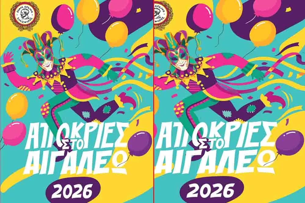 Ο Δήμος Αιγάλεω σας προσκαλεί να συμμετάσχετε στην κορύφωση των Αποκριάτικων εκδηλώσεων την Καθαρά Δευτέρα 23 Φεβρουαρίου 2026 στο Άλσος Αιγάλεω (Μπαρουτάδικο), σε μια ξεχωριστή γιορτή που θα γεμίσει την πόλη με χαρά, παράδοση και κέφι.