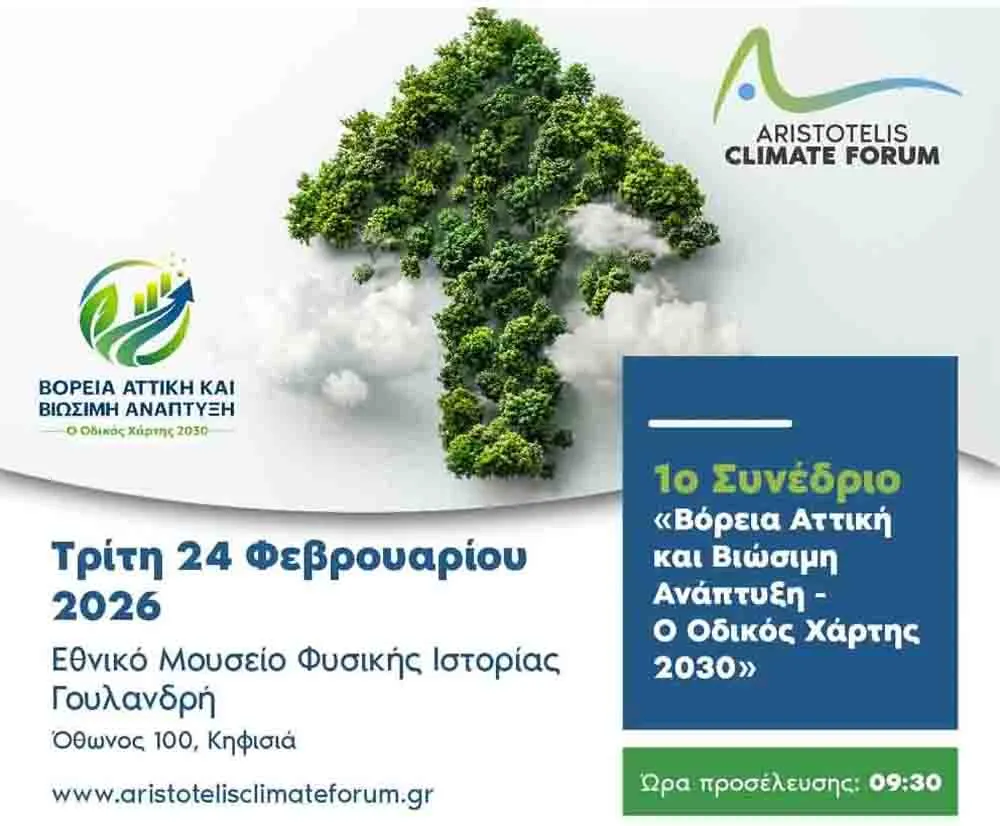 Το συνέδριο διοργανώνεται από το ARISTOTELIS CLIMATE FORUM και αποτελεί μια στρατηγική, θεσμικού χαρακτήρα πρωτοβουλία με στόχο τη διαμόρφωση ενός ρεαλιστικού και εφαρμόσιμου πλαισίου βιώσιμης ανάπτυξης για τη Βόρεια Αττική έως το 2030.
