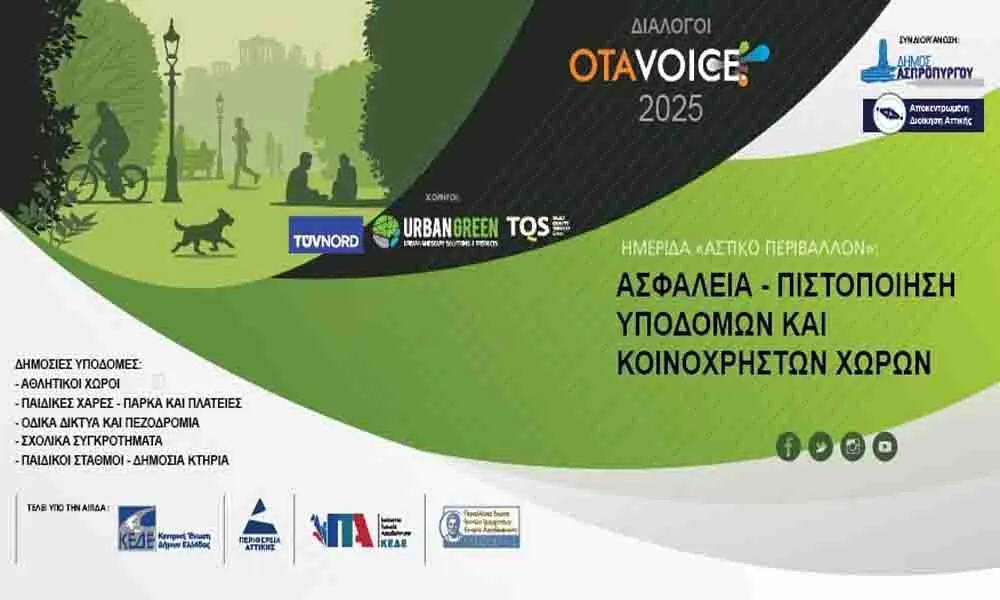 Η ημερίδα υλοποιείται στο πλαίσιο των «Διαλόγων OTAVOICE.gr 2025» και διοργανώνεται από τον Δήμο Ασπροπύργου, σε συνεργασία με την Αποκεντρωμένη Διοίκηση Αττικής, τελώντας υπό την αιγίδα της Κεντρικής Ένωσης Δήμων Ελλάδας (ΚΕΔΕ), της Περιφέρειας Αττικής και της Πανελλήνιας Ένωσης Γενικών Γραμματέων Τοπικής Αυτοδιοίκησης «Κλεισθένης».