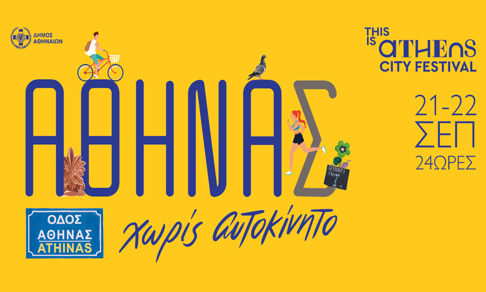Με μια ανοιχτή γιορτή και με επίκεντρο την οδό Αθηνάς, ο Δήμος Αθηναίων θα τιμήσει την Παγκόσμια Ημέρα Χωρίς Αυτοκίνητο (22/9). Για 24 ώρες, από τις 8.00 μ.μ. του Σαββάτου (21/9) έως τις 8 μ.μ. της Κυριακής (22/9), η Αθηνάς θα μετατραπεί σ’ έναν δρόμο χωρίς μηχανοκίνητα οχήματα.