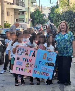 Τους μικρούς μαθητές συνόδευσε η Διευθύντρια του σχολείου, Άννα Μπαλτά και οι εκπαιδευτικοί, Μάγδα Δουλγεράκη, Λάμπρος Φαρμάκης και Θανάσης Γραμματίκας.