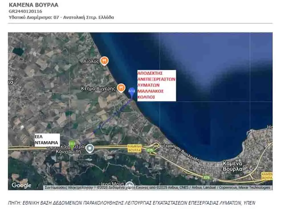 Συγκεκριμένα, όπως σημειώνει, η εγκατάσταση επεξεργασίας λυμάτων με κωδικό GR24401201, υπό την διαχείριση του Δήμου Καμένων Βούρλων στην περιοχή Νταμάρια της τοπικής κοινότητας Καινούργιου, όχι απλά δυσλειτουργεί… αλλά οι αρμόδιοι για την σωστή λειτουργία της, συνειδητά εξαφάνιζαν κάθε ποιοτικό χαρακτηριστικό δημόσιας υγείας των ακτών κολύμβησης σε όλη την θαλάσσια περιοχή ευθύνης του Δήμου Καμένων Βούρλων την δημόσια υγεία.
