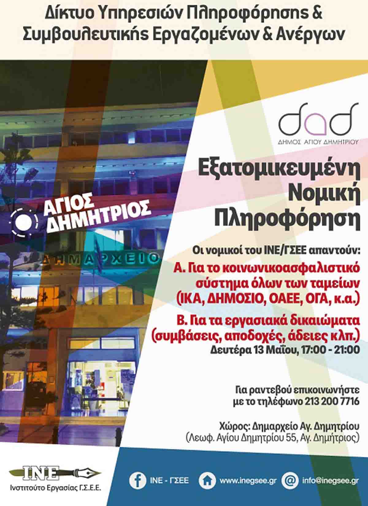 Εξατομικευμένη Νομική Πληροφόρηση για νομικά και εργασιακά θέματα, παρέχουν το Δίκτυο Υπηρεσιών Πληροφόρησης και Συμβουλευτικής Εργαζομένων και Ανέργων, σε συνεργασία με το Ινστιτούτο Εργασίας της ΓΣΕΕ (ΙΝΕ/ΓΣΕΕ).