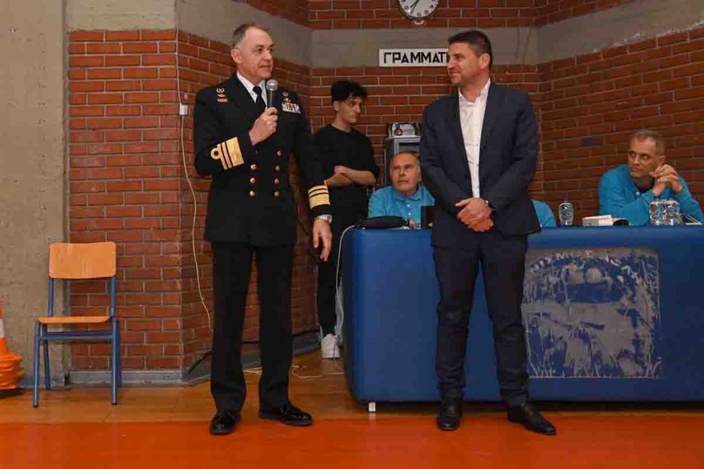 Στη συνέχεια και αφού τόνισε πως είναι τιμή για την πόλη να είναι μεταξύ των κατοίκων της, ο Αρχηγός του Γενικού Επιτελείου Ναυτικού, Αντιναύαρχος Δ. Κατάρας, τον συνεχάρη για την πορεία του και τον ευχαρίστησε για όλα όσα έχει προσφέρει στις Ένοπλες Δυνάμεις.