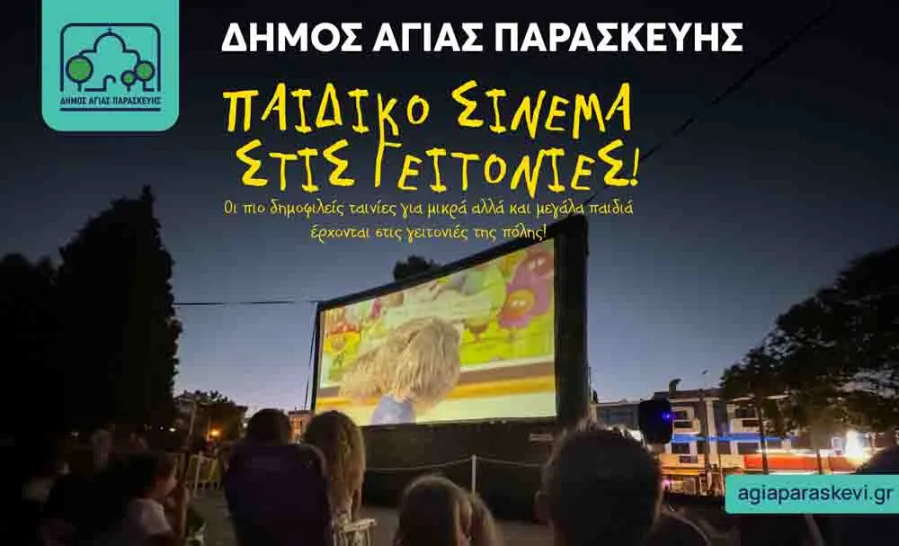 Ο Δήμος Αγίας Παρασκευής φέρνει για άλλη μία χρονιά το καλοκαιρινό παιδικό σινεμά στις γειτονιές της πόλης, μετατρέποντας πλατείες και πάρκα σε υπαίθριους κινηματογράφους.