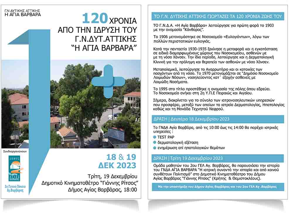 Το Γ.Ν.Δ.Α. «Η Αγία Βαρβάρα» λειτούργησε για πρώτη φορά το 1903 με την ονομασία “Κάνθαρος”.