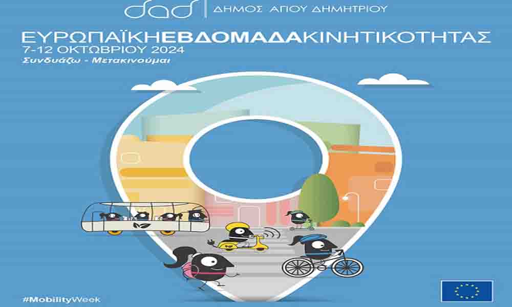 Την Ευρωπαϊκή Εβδομάδα Κινητικότητας γιορτάζει ο Δήμος Αγίου Δημητρίου από 7 έως 12 Οκτωβρίου και καλεί  στους κατοίκους του να αφήσουν για λίγο το Ι.Χ. και να δοκιμάσουν εναλλακτικούς τρόπους μετακίνησης: με τα πόδια, με τα Μέσα Μαζικής Μεταφοράς και με το ποδήλατο ή το πατίνι. Να μοιραστούν τον δημόσιο χώρο με τους μαθητές, τους ηλικιωμένους, τους γονείς με τα καροτσάκια και με τα ΑμεΑ.