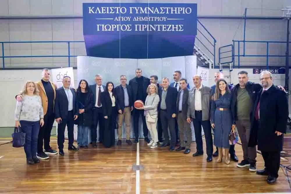 Ο Δήμος Αγίου Δημητρίου έδωσε το όνομα του καλαθοσφαιριστή Γιώργου Πρίντεζη στο Κλειστό Γυμναστήριο της οδού Θεομήτορος