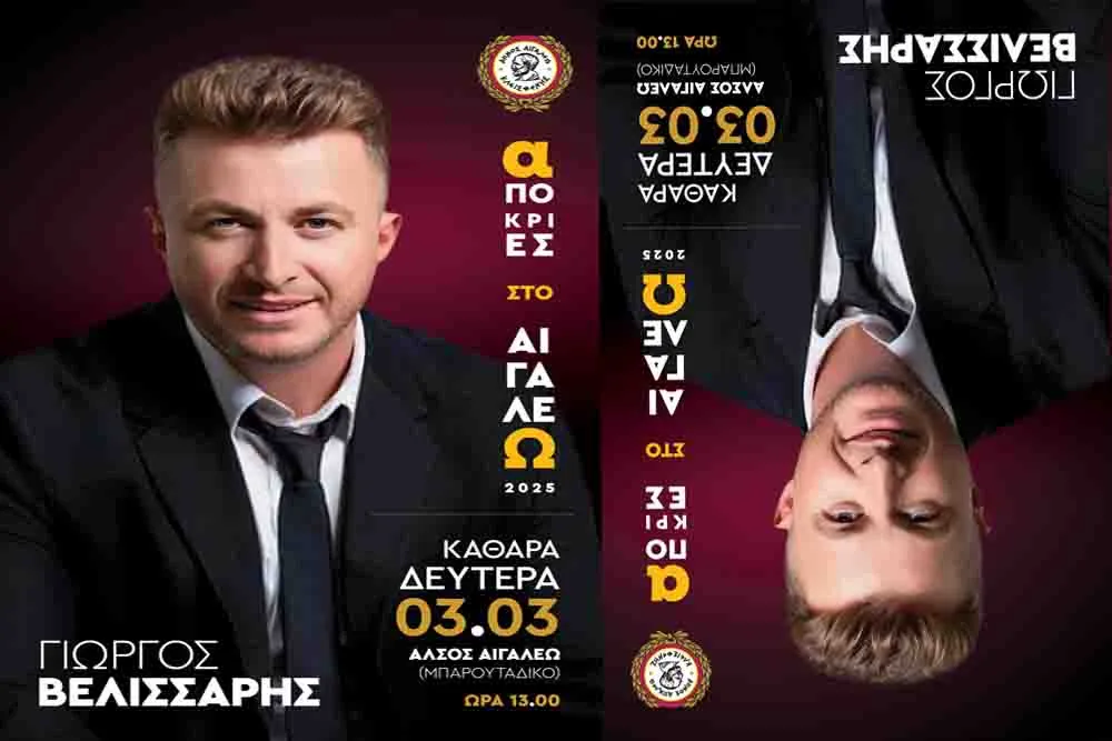 Σας περιμένουμε όλους για να γιορτάσουμε μαζί με χαρά και ενθουσιασμό τις Απόκριες στο Αιγάλεω!