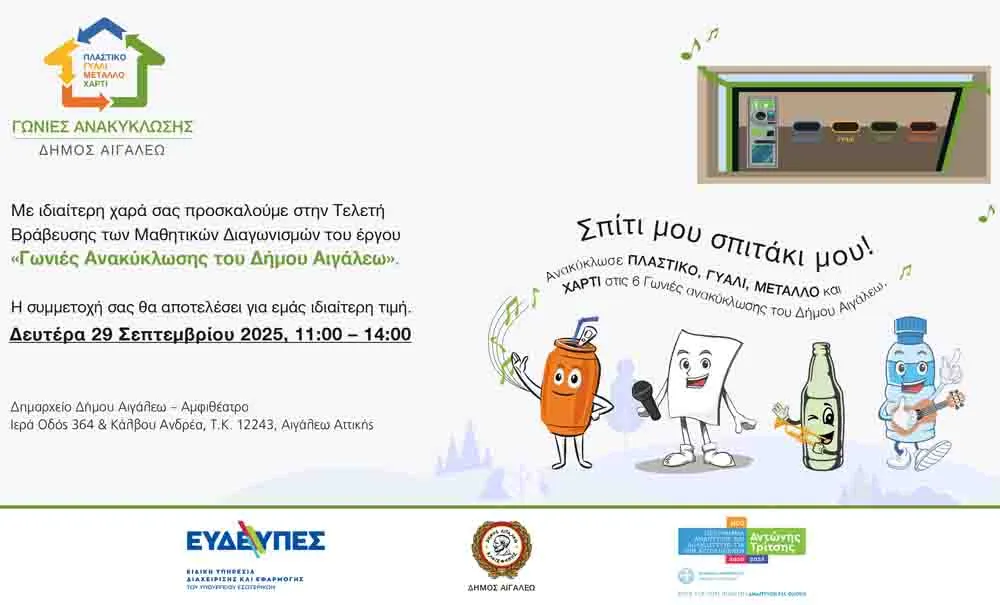 Δήμος Αιγάλεω: «Μαθητικοί διαγωνισμοί ανακύκλωσης – Τιμώντας τους διακριθέντες»