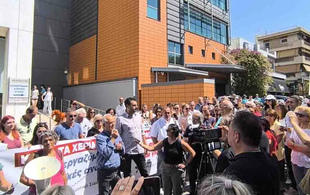 Μαζική και δυναμική κινητοποίηση πραγματοποιήθηκε το πρωί της Τρίτης 9 Σεπτεμβρίου έξω από την Αποκεντρωμένη Διοίκηση Αττικής, ενάντια στην κλήση σε απολογία του Δημάρχου Καισαριανής Ηλία Σταμέλου και 20 Δημοτικών Συμβούλων, επειδή στήριξαν τη μονιμοποίηση συμβασιούχων της καθαριότητας.