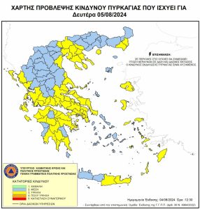 Σύμφωνα με το χάρτη κινδύνου πυρκαγιάς που ισχύει για αύριο Δευτέρα, 5 Αυγούστου 2024, ο Δήμος Δελφών ανήκει στην κατηγορία 3 (υψηλή κατηγορία κινδύνου), έχοντας θέσει το σύνολο των αρμόδιων υπηρεσιών του σε κατάσταση αυξημένης ετοιμότητας, με άμεση λήψη όλων των προβλεπόμενων μέτρων και δράσεων, λόγω της επικινδυνότητας εκδήλωσης και εξάπλωσης δασικών πυρκαγιών.