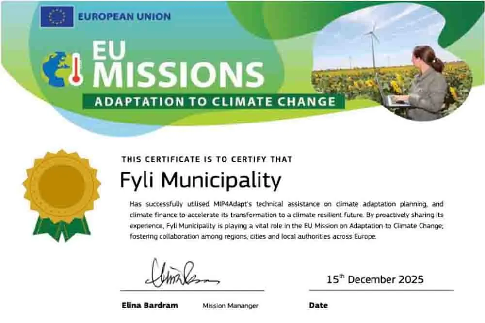 Ο Δήμαρχος Φυλής, Χρήστος Παππούς, είναι ένας από τους πρώτους υπογράφοντες του Χάρτη της Ε.Ε. για την Αποστολή Προσαρμογής στην Κλιματική Αλλαγή (EU Missions – Adaptation to Climate Change).