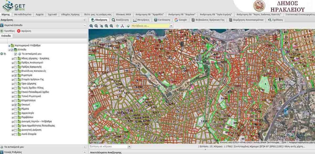 Η πλατφόρμα GIS (gis.heraklion.gr) περιέχει ενημερωμένο αρχειακό υλικό της Πολεοδομίας όπως Σχέδια Πόλης, τοπικά ρυμοτομικά, όρια οικισμών, Γενικά Πολεοδομικά Σχέδια, αρχαιολογικές ζώνες, οριοθετήσεις ρεμάτων, ενιαίο υπόβαθρο ορθοφωτογραφιώνκ.ά. απαλλάσσοντας τον επαγγελματία μηχανικό και το ενδιαφερόμενο κοινό από επισκέψεις στην Υπηρεσία, χρονοβόρες τόσο για τον επισκέπτη, όσο και για τους εργαζόμενους.