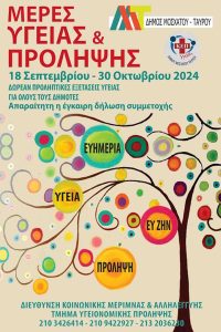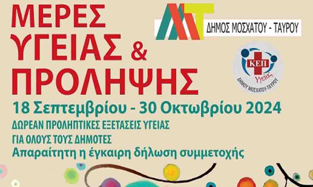 Τις «Μέρες Υγείας και Πρόληψης», διοργανώνει έως τις 30 Οκτωβρίου, για 3η συνεχόμενη χρονιά ο Δήμος Μοσχάτου Ταύρου.
