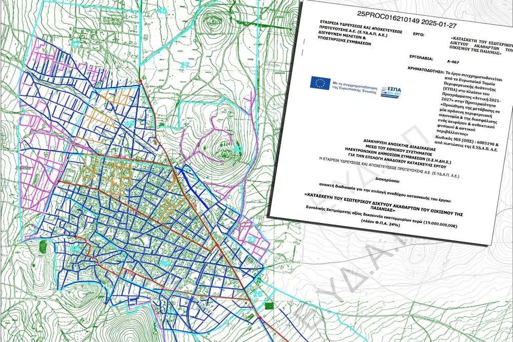Στην προκήρυξη της «Κατασκευής του εσωτερικού δικτύου ακαθάρτων του οικισμού της Παιανίας» προχώρησε τη Δευτέρα 27 Ιανουαρίου 2025 η ΕΥΔΑΠ ως επιστέγασμα της προσπάθειας του Δημάρχου Παιανίας Ισίδωρου Μάδη για την επανεκκίνηση ενός έργου υψίστης σημασίας για την ευρύτερη περιοχή.