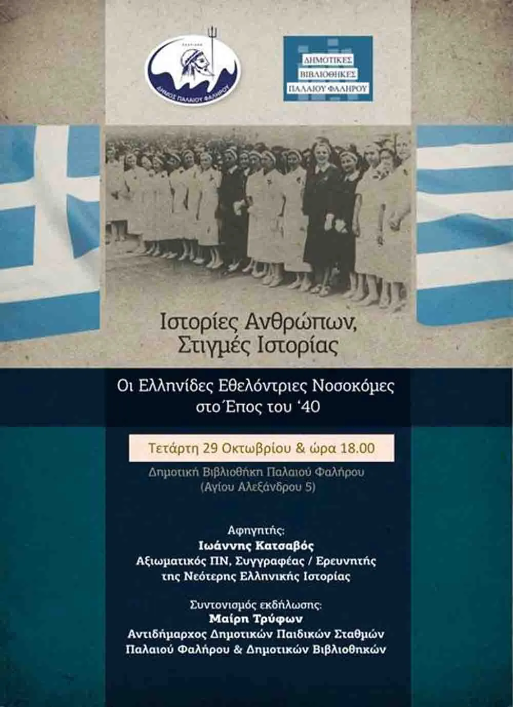 Δήμος Παλαιού Φαλήρου: “Οι Ελληνίδες Εθελόντριες Νοσοκόμες στο Έπος του ‘40” – Εκδήλωση – Τετάρτη 29 Οκτωβρίου – Δημοτική Βιβλιοθήκη