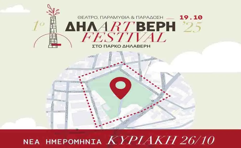 Το νέο φεστιβάλ ΔΗΛΑRTΒΕΡΗ  διοργανώνεται για πρώτη φορά την Κυριακή 26 Οκτωβρίου 2025, στο πάρκο Δηλαβέρη  (Δαβάκη & Πίνδου 17) στον Πειραιά, με ελεύθερη είσοδο για μικρούς και μεγάλους, εντάσσοντας το πάρκο στον πολιτιστικό χάρτη της πόλης.