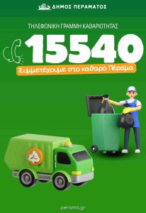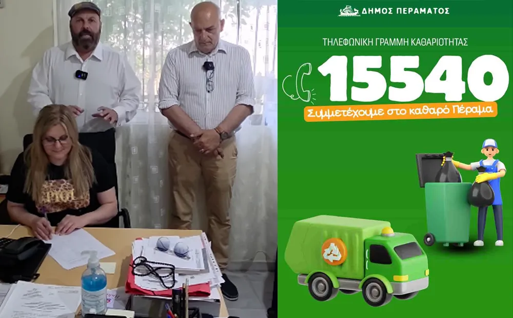 Ο δήμαρχος Περάματος Γιάννης Λαγουδάκος, συνοδευόμενος από τον αντιδήμαρχο Διεύθυνσης Περιβάλλοντος – Ποιότητας Ζωής Μάνθο Λάππα ανακοίνωσε την καινούργια υπηρεσία που τίθεται στην διάθεση των δημοτών, προτρέποντας τους κατοίκους του Περάματος αλλά και τους εργαζόμενους στην πόλη, να επικοινωνούν στο 15540 αναφέροντας τα προβλήματα και τα θέματα που χρήζουν ανταπόκρισης από το δήμο, ώστε οι λύσεις, όπως είπε, να δίνονται το δυνατόν αμεσότερα.