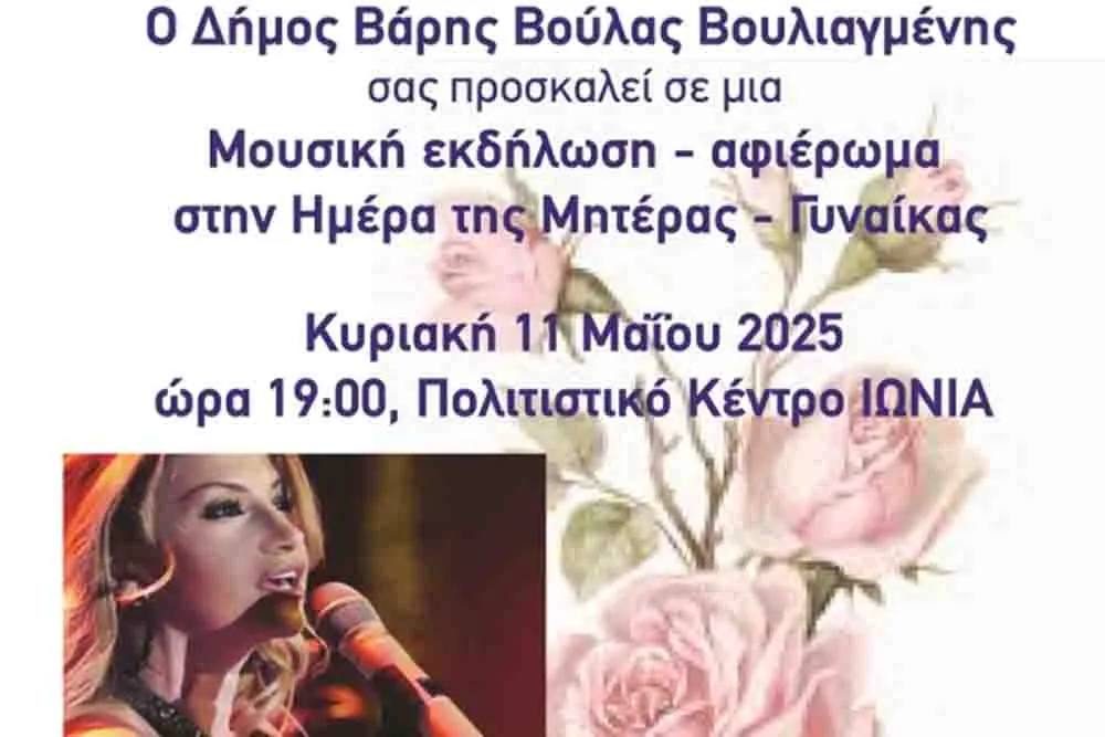 Ο Δήμος Βάρης Βούλας Βουλιαγμένης τιμά την Ημέρα της Μητέρας-Γυναίκας με μια ξεχωριστή μουσική εκδήλωση γεμάτη συναίσθημα και μελωδίες.