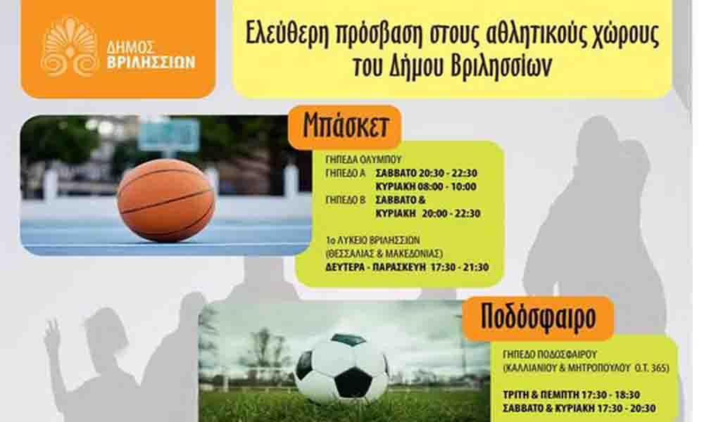 Τη δυνατότητα ελεύθερης πρόσβασης στις δημοτικές αθλητικές εγκαταστάσεις, δίνει ο Δήμος Βριλησσίων, με γνώμονα τη δημιουργία περισσότερων ευκαιριών για την άθληση των πολιτών.
