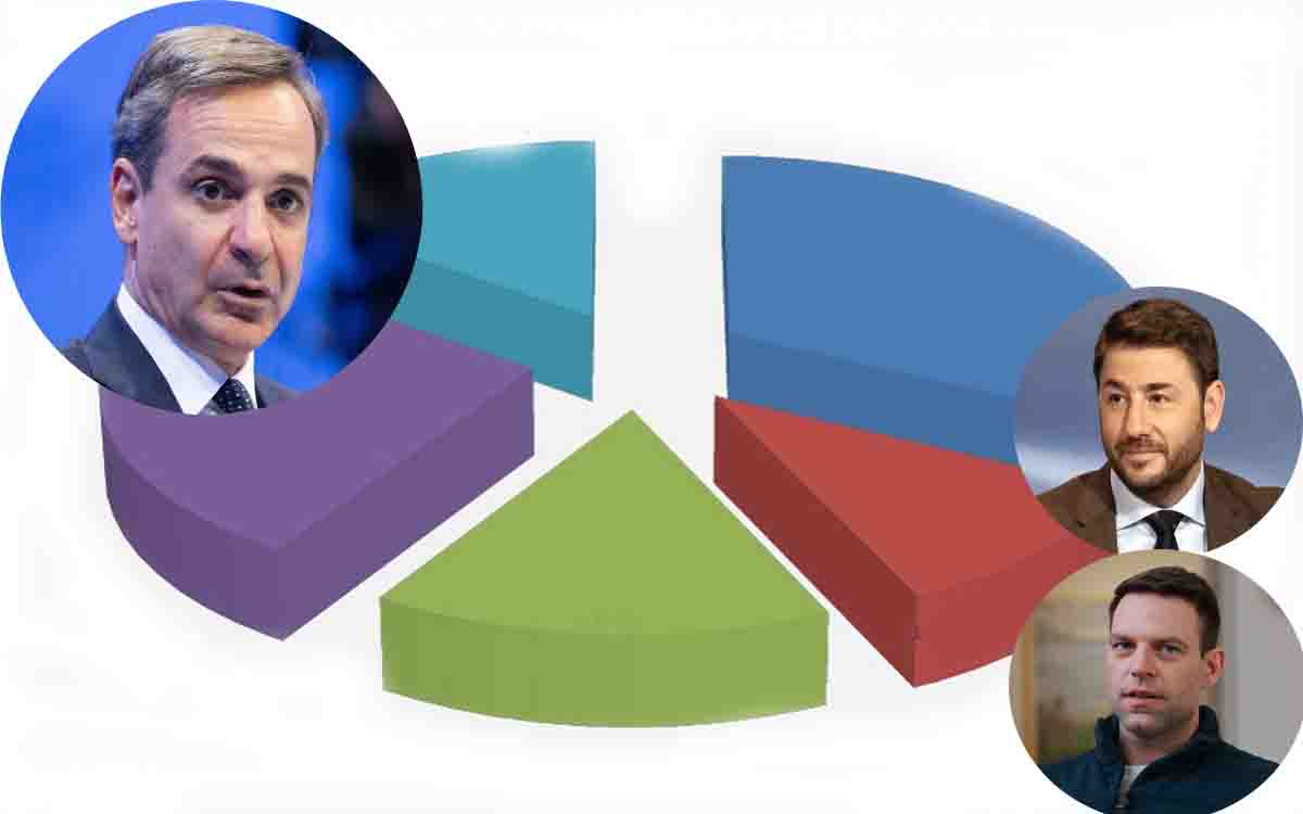 Μπροστά με 21,5 μονάδες η ΝΔ -Στη δεύτερη θέση το ΠΑΣΟΚ σε μονοψήφια ο ΣΥΡΙΖΑ.