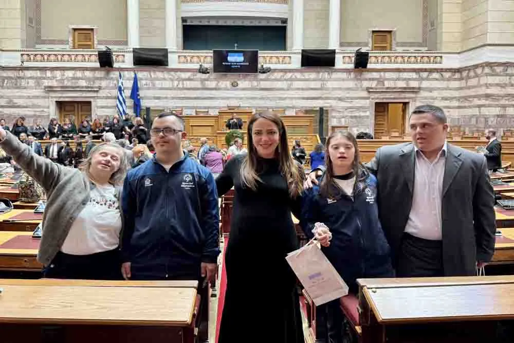 Παγκόσμια Ημέρα για το Σύνδρομο Down, σήμερα, και η Υπουργός Κοινωνικής Συνοχής και Οικογένειας, Δόμνα Μιχαηλίδου, επισκέφθηκε το πρωί το Ελληνικό Κοινοβούλιο συνοδευόμενη από τέσσερα παιδιά με σύνδρομο Down με τους συνοδούς τους. Η απόφαση της Υπουργού να φιλοξενήσει τα άτομα με σύνδρομο Down στον Ναό της Δημοκρατίας, αντί η ίδια να επισκεφτεί κάποιο ίδρυμα, αποτελεί μια ισχυρή συμβολική κίνηση, που στόχο έχει την ευαισθητοποίηση και την ενημέρωση του κοινού για τα δικαιώματα και την ένταξη των ατόμων με αναπηρία στην κοινωνία.