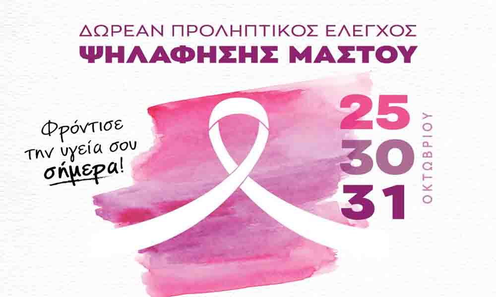 Ο Δήμος Ιλίου διοργανώνει ΔΩΡΕΑΝ προληπτικό έλεγχο ψηλάφησης μαστού στις 25, 30 και 31 Οκτωβρίου 2024. Τις εξετάσεις θα πραγματοποιήσει ο κ. Κωνσταντίνος Λούης, Μαιευτήρας-Γυναικολόγος της Γ΄ Μαιευτικής-Γυναικολογικής Κλινικής του Πανεπιστημιακού Γενικού Νοσοκομείου «ΑΤΤΙΚΟΝ».