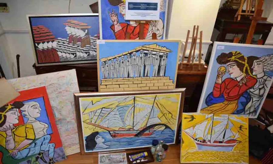 Στο πλαίσιο αυτό, συγκροτήθηκε κλιμάκιο αστυνομικών της ανωτέρω υπηρεσίας, προκειμένου να πραγματοποιηθούν οι απαραίτητες εξακριβώσεις προσώπων καθώς και των χώρων που ήταν τοποθετημένα τα προς δημοπράτηση έργα. Εκεί, -2- από τους κατηγορούμενους – εκπροσώπους του οίκου – υπέδειξαν στους αστυνομικούς τα εν λόγω έργα ως γνήσια και μάλιστα γνωστών Ελλήνων καλλιτεχνών, όπως ενδεικτικά των Φασιανού, Μυταρά, Γκίκα – Χατζηκυριάκου, Τσαρούχη, Παρθένη κ.α.