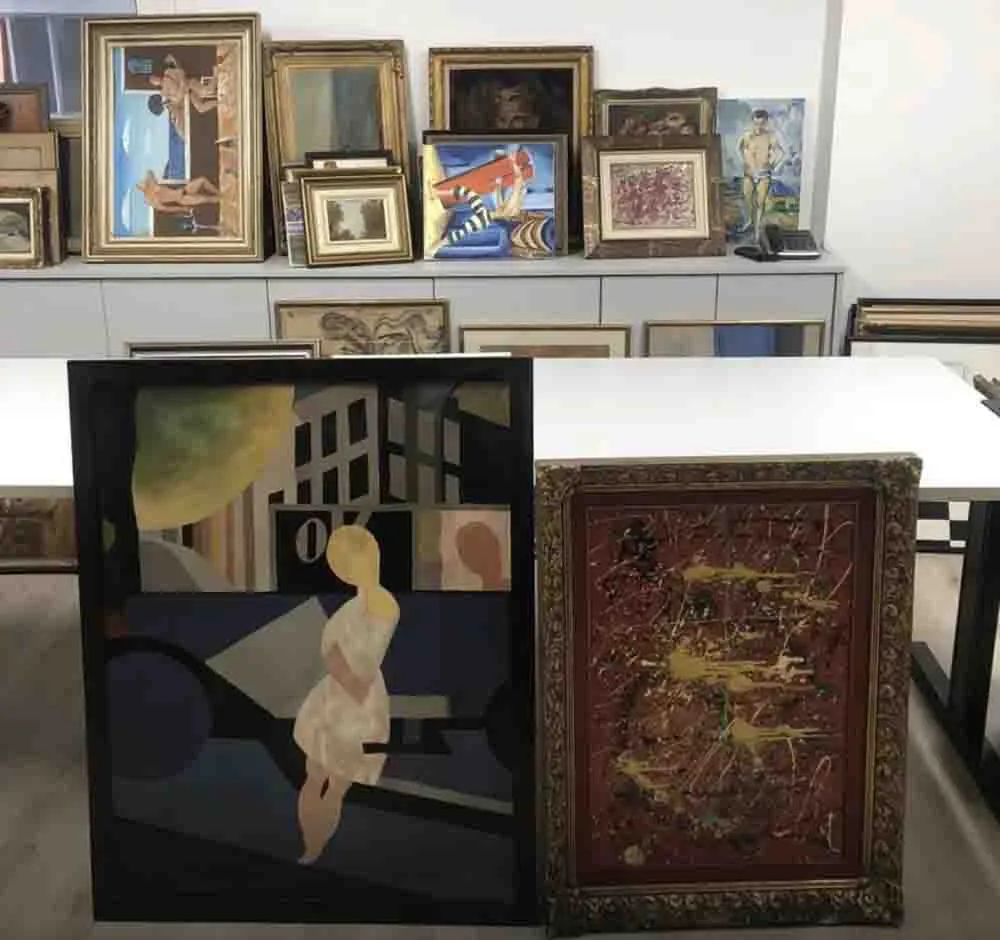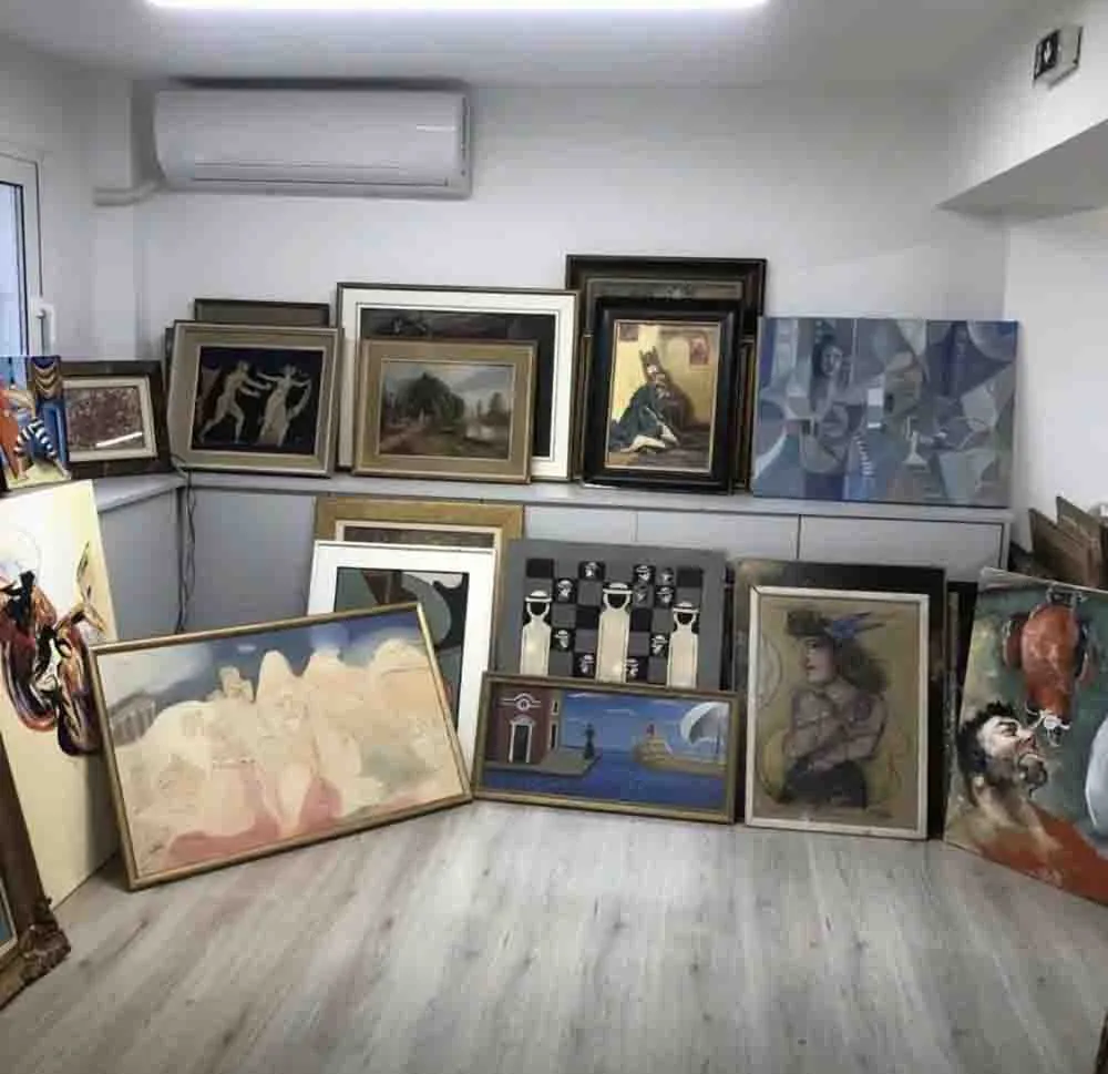 Κατασχέθηκαν, μεταξύ άλλων, πάνω από 480 πίνακες ζωγραφικής, 2 πιστοποιητικά γνησιότητας, 4 πιστόλια, 6 γεμιστήρες και 370 φυσίγγια διαφόρων διαμετρημάτων