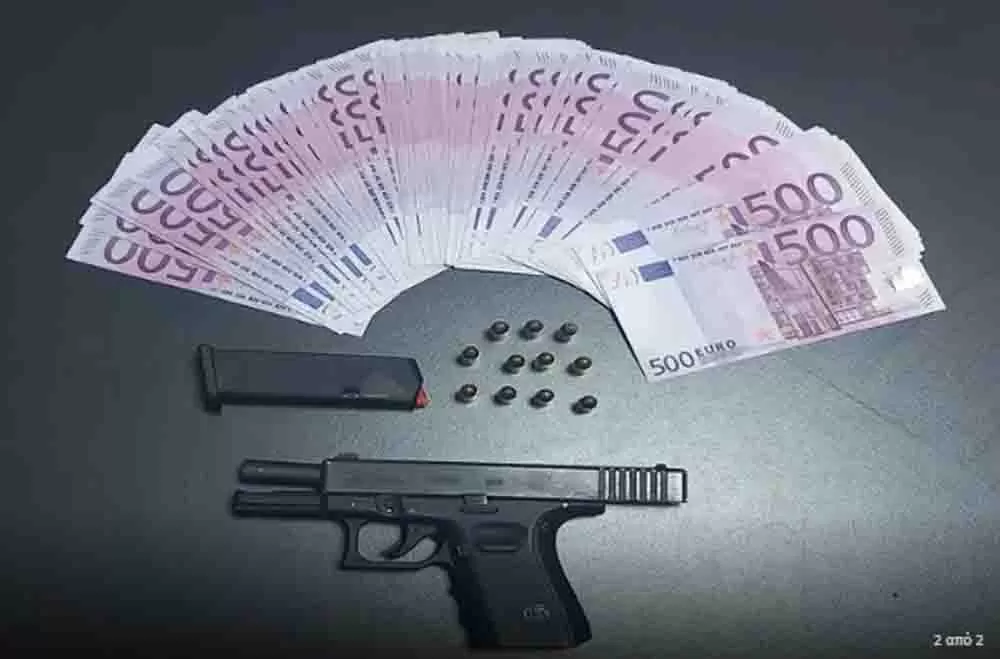 Κατασχέθηκαν πιστόλι, 11 φυσίγγια, μαχαίρι, 2.580 ευρώ και 9 κινητά