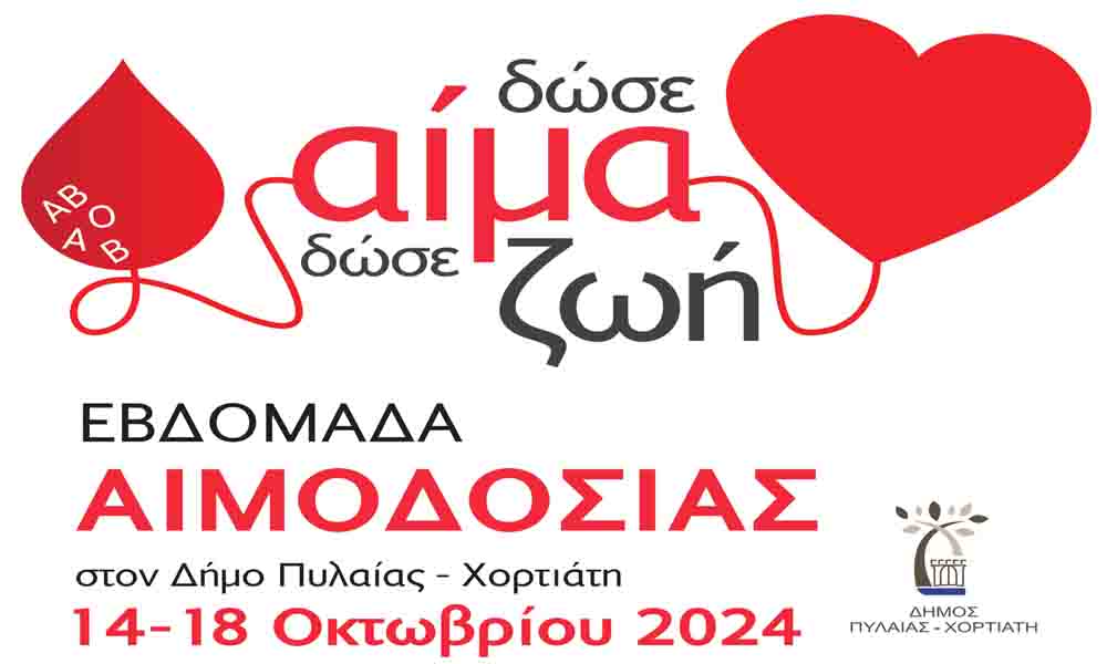 Εβδομάδα εθελοντικής αιμοδοσίας από τις 14 έως τις 18 Οκτωβρίου από τον δήμο Πυλαίας-Χορτιάτη σε όλες τις δημοτικές ενότητες