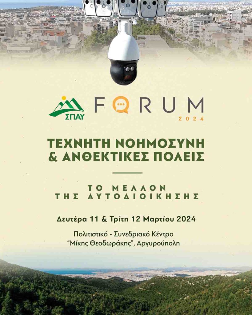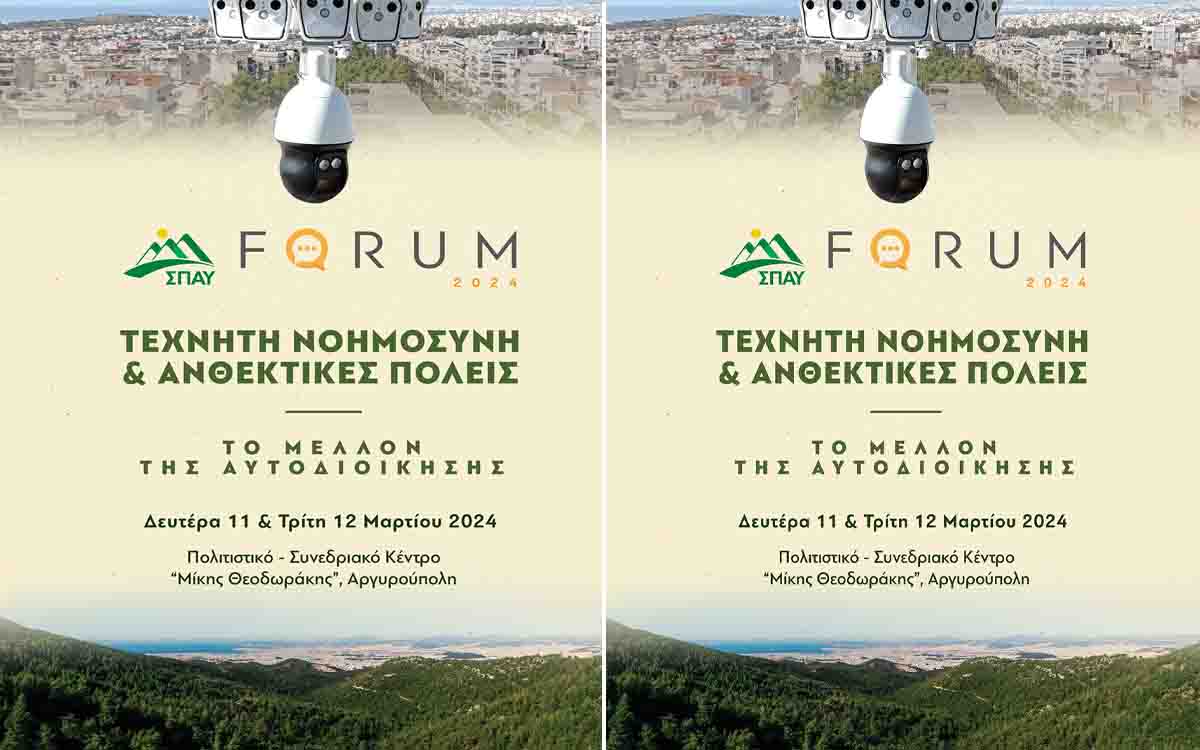 Με κεντρικό θέμα την Τεχνητή Νοημοσύνη και τις Ανθεκτικές Πόλεις, το 3ο FORUM του ΣΠΑΥ διαμηνύει ότι μια νέα εποχή ξεκινά για τον Υμηττό, με την αξιοποίηση της τεχνητής νοημοσύνης και των έξυπνων τεχνολογιών, με στόχο να γίνει ο Υμηττός το πρώτο «Έξυπνο Δάσος» σε πανελλαδικό επίπεδο.