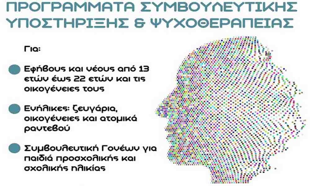 Ειδικότερα, τα προγράμματα Συμβουλευτικής Υποστήριξης και Ψυχοθεραπείας αφορούν: