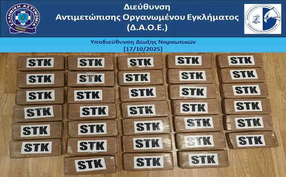 Από τη Διεύθυνση Αντιμετώπισης Οργανωμένου Εγκλήματος κατασχέθηκαν πάνω από 38 κιλά κοκαΐνης, που βρέθηκαν εντός εμπορευματοκιβωτίου με μπανάνες στο λιμάνι του Πειραιά.