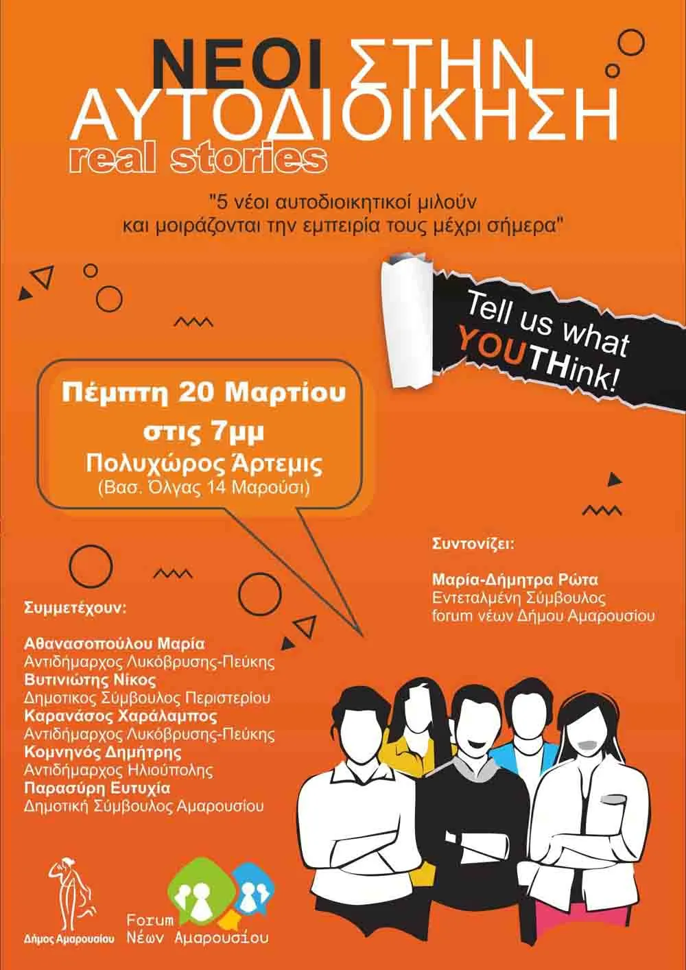 Μαρούσι: “Νέοι στην Αυτοδιοίκηση-Real stories”: 5 νέοι αυτοδιοικητικοί μιλούν και μοιράζονται την εμπειρία τους μέχρι σήμερα – Πέμπτη 20 Μαρτίου