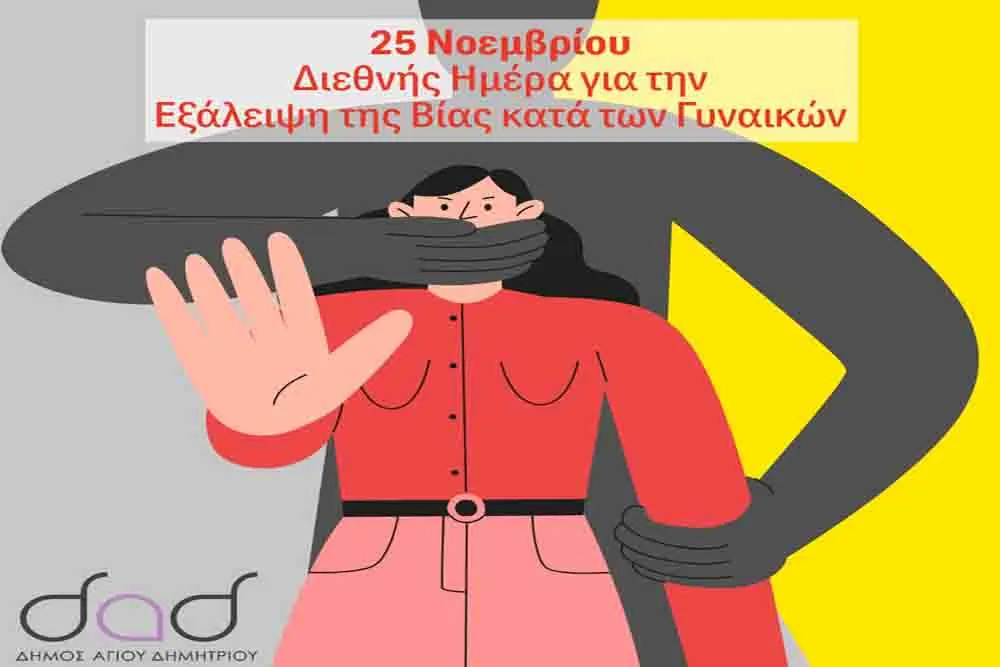 Ανακοίνωση την Παγκόσμια Ημέρα για την Εξάλειψη της Βίας κατά των Γυναικών εξέδωσε και η Δημοτική Επιτροπή Ισότητας (ΔΕΠΙΣ) Αγίου Δημητρίου, όπου εκτός από τις δράσεις που οργανώνονται για την ημέρα αυτή, σημειώνει: