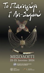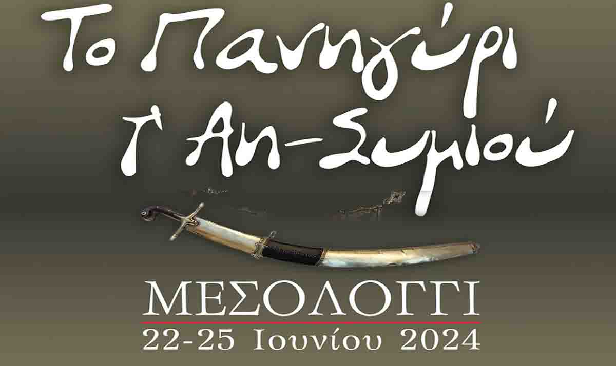 Ο Δήμος Ιερής Πόλης Μεσολογγίου και οι Άη-Συμιώτες πανηγυριστές σας προσκαλούν στο φημισμένο παραδοσιακό, εθνικό και θρησκευτικό πανηγύρι του Άη-Συμιού, ενταγμένο στην άυλη πολιτιστική κληρονομιά της UNESCO, οι εκδηλώσεις του οποίου θα διαρκέσουν από το Σάββατο 22 έως και την Τρίτη 25 Ιουνίου 2024.