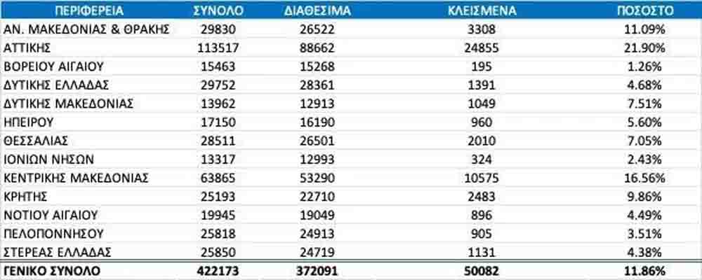 Στον πίνακα φαίνεται ένα στατιστικό δείγμα ανά περιφέρεια