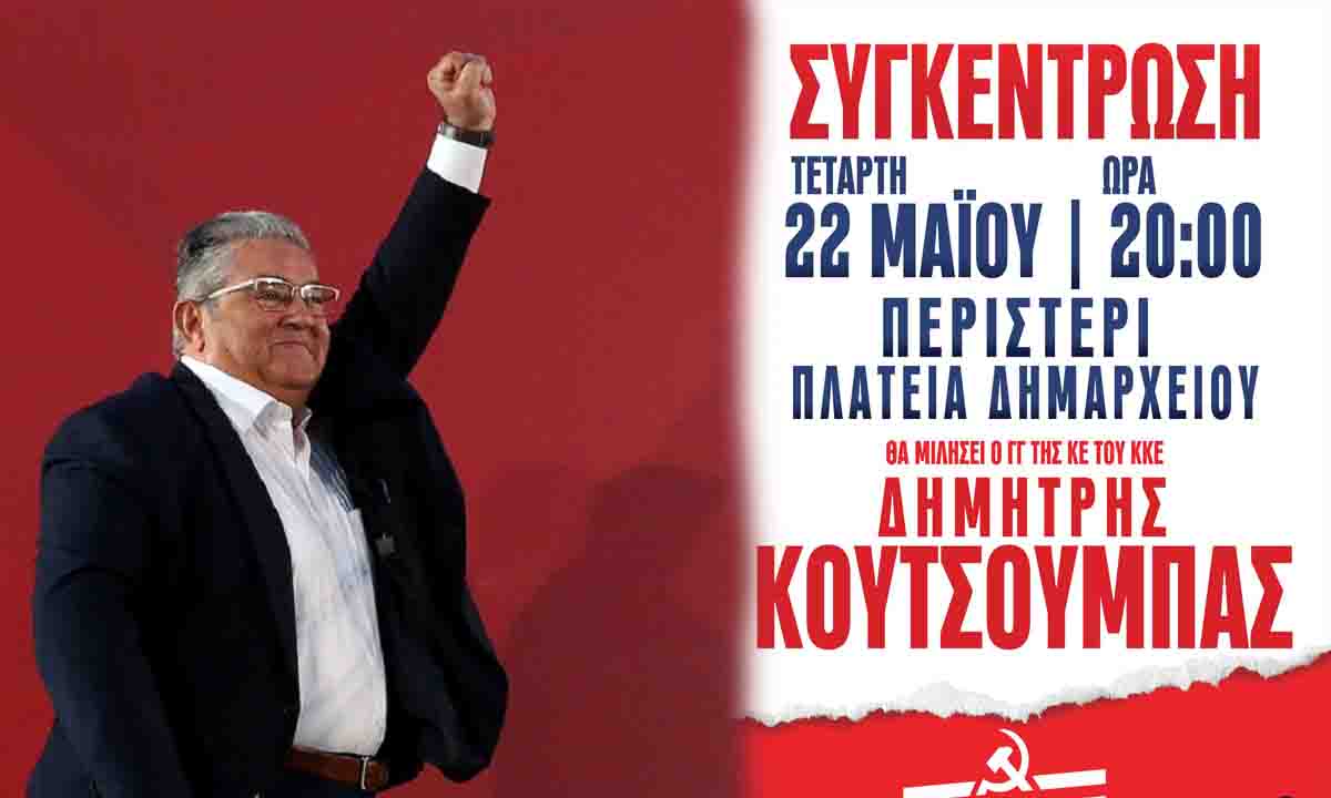 Ξεκινώντας από το Περιστέρι, στο οποίο θα μιλήσει σε συγκέντρωση ψηφοφόρων την Τετάρτη 22 Μαΐου στις 8:00 μμ, ο Γ.Γ. του ΚΚΕ, Δημήτρης Κουτσούμπας ξεκινά μία μίνι περιοδεία σε δήμους της Αθήνας. Ειδικότερα το πρόγραμμα ομιλιών του κ. Κουστούμπα για το διάστημα 22 – 26 Μαΐου είναι: