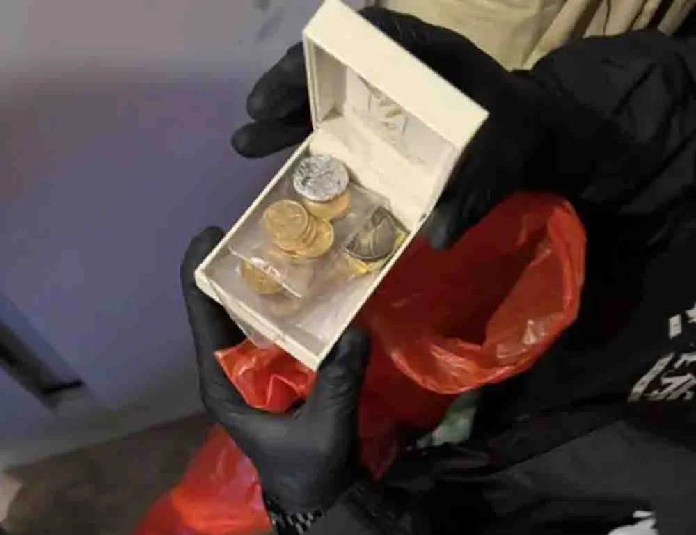 Όπως αναφέρεται στο σχετικό δελτίο Τύπου, κατασχέθηκαν, μεταξύ άλλων, 19 χρυσές λίρες, μία ράβδος χρυσού, 3 χρυσές αλυσίδες και το χρηματικό ποσό των 35.750 ευρώ.