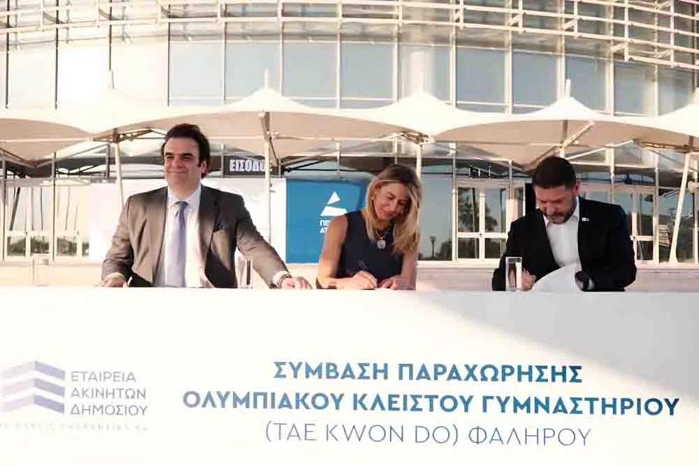 Τη σύμβαση για την παραχώρηση του Κλειστού Ολυμπιακού Γηπέδου Φαλήρου Tae Kwon Do στην Περιφέρεια Αττικής υπέγραψαν χθες ο Περιφερειάρχης Νίκος Χαρδαλιάς και η Διευθύνουσα Σύμβουλος της Εταιρείας Ακινήτων Δημοσίου (ΕΤΑΔ) Ηρώ Χατζηγεωργίου, παρουσία του Υπουργού Εθνικής Οικονομίας και Οικονομικών Κυριάκου Πιερρακάκη.