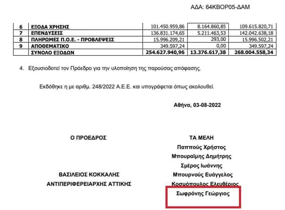 Μέσα σε αυτούς και ο πρώην Δήμαρχος Σαρωνικού, Γιώργος Σωφρόνης, που συμμετείχε και ψήφιζε αυτές τις αποφάσεις ως μέλος του ΕΣΔΝΑ.