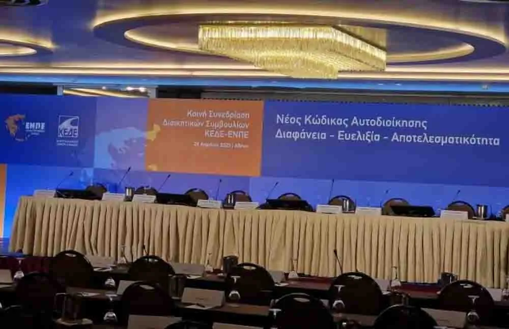 Η κοινή συνεδρίαση των Διοικητικών Συμβουλίων της Ένωσης Περιφερειών Ελλάδας (ΕΝΠΕ) και της Κεντρικής Ένωσης Δήμων Ελλάδας (ΚΕΔΕ), πραγματοποιείται σήμερα Δευτέρα 28 Απριλίου στο ξενοδοχείο Diνani Caravel, με θέμα «Νέος Κώδικας Αυτοδιοίκησης Διαφάνεια – Ευελιξία – Αποτελεσματικότητα». Στη συνεδρίαση θα μιλήσει, όπως προαναφέρθηκε  ο Υπουργός  Εσωτερικών, Θοδωρής Λιβάνιος, παρουσιάζοντας τις βασικές αρχές που θα διέπουν τον Νέο Κώδικα της αυτοδιοίκησης.