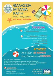 Τα Θαλάσσια λουτρά θα πραγματοποιηθούν από Δευτέρα 15/07/2024 έως Παρασκευή 26/07/2024.