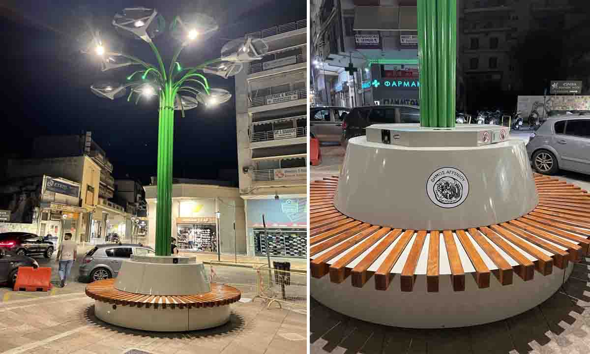 Ένα έξυπνο ηλιακό δένδρο τοποθέτησε  ο Δήμος Αγρινίου  στο κέντρο της πόλης, στην πλατεία Ειρήνης.