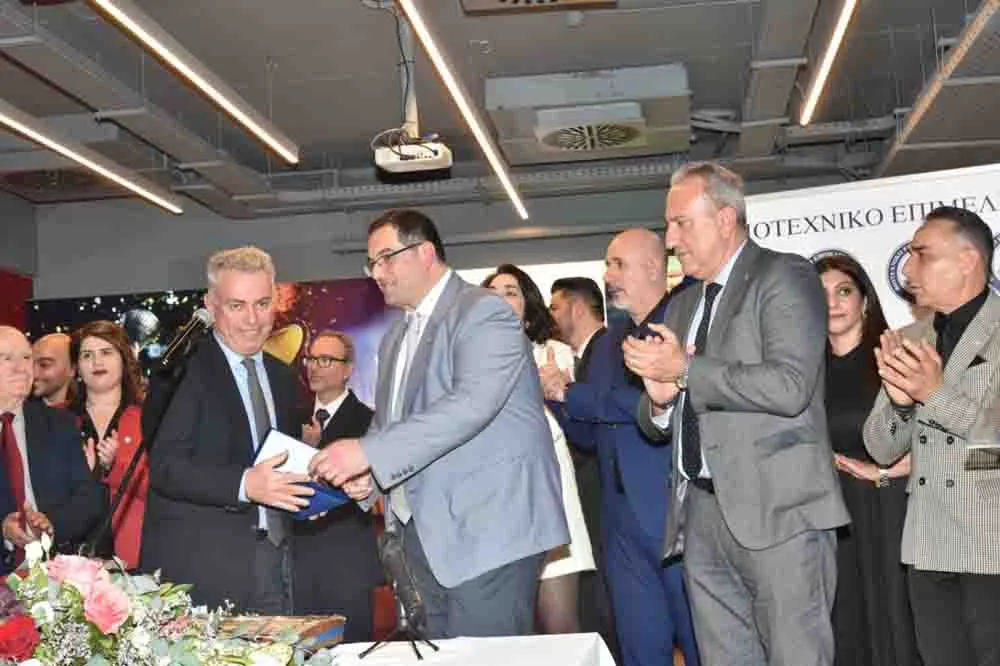 Στο πλαίσιο της εκδήλωσης για την κοπή της πρωτοχρονιάτικης πίτας του Βιοτεχνικού Επιμελητηρίου Πειραιά, που πραγματοποιήθηκε στην αίθουσα Red 1925 του Γηπέδου Γ. Καραϊσκάκης, ο Δήμαρχος Νίκαιας-Αγίου Ιωάννη Ρέντη Κωνσταντίνος Μαραγκάκης, τιμήθηκε για τη συμβολή του στην ενίσχυση της τοπικής επιχειρηματικότητας και της βιοτεχνικής δραστηριότητας.