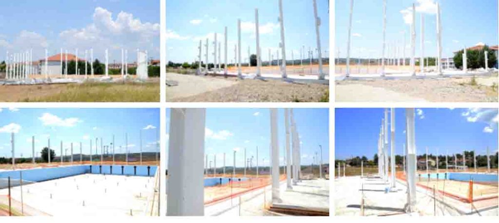 Έχουν τοποθετηθεί οι κεντρικές κολώνες στήριξης και παράλληλα διαμορφώνονται οι υπόγειοι βοηθητικοί χώροι (αποθήκες, μηχανοστάσιο πισίνας και wc επισκεπτών).